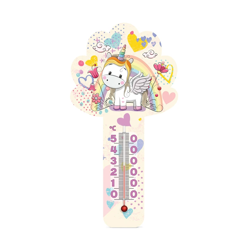 Термометр на картонному підставі серії "Любимчик" зроблений з щільного картону товщиною 2 мм з нанесенням УФ друку. Завдяки чому малюнки на термометрі стійкі до фізичних пошкоджень та вологи. Основною перевагою даних термометрів є величезна кількість, що постійно оновлюються малюнків.