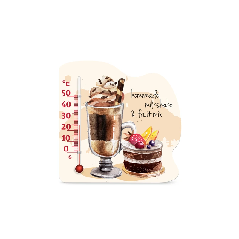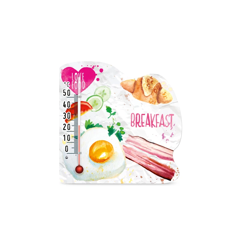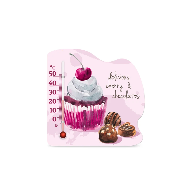 Термометр з малюнками на тему їжі особливо актуальний на кухні. Кріплення магніт дозволяє прикріпити виріб на холодильник або інші металеві поверхні.