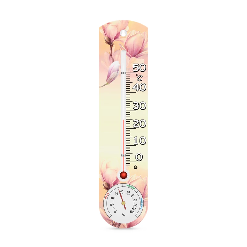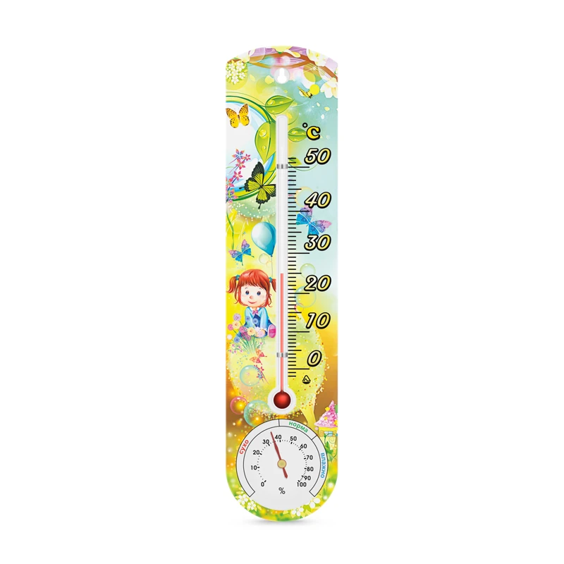 ТГК-1 термо-гігрометр біметалевий кімнатний служить для визначення температури і вологості в приміщенні. Для зручності використання на гігрометрі виділена зона комфортної для людини вологості.