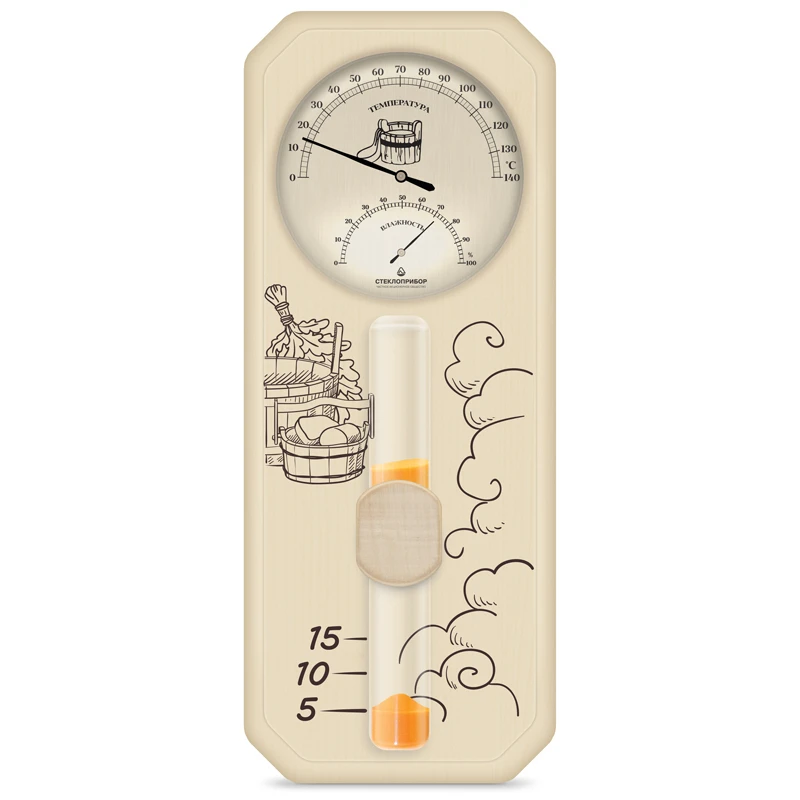 Банна станція вик. 3 - найважливіший атрибут будь-якої лазні і сауни. Не тільки з естетичного боку, а й з практичної. Так як комфортні умови в парильні - це запорука міцного здоров'я. Даний прилад складається з термометра, гігрометра і пісочного годинника. Термометр і гігрометр вимірюють температуру і вологість у парильні. А годинник пісочний допомагає контролювати час проведення у сауні.