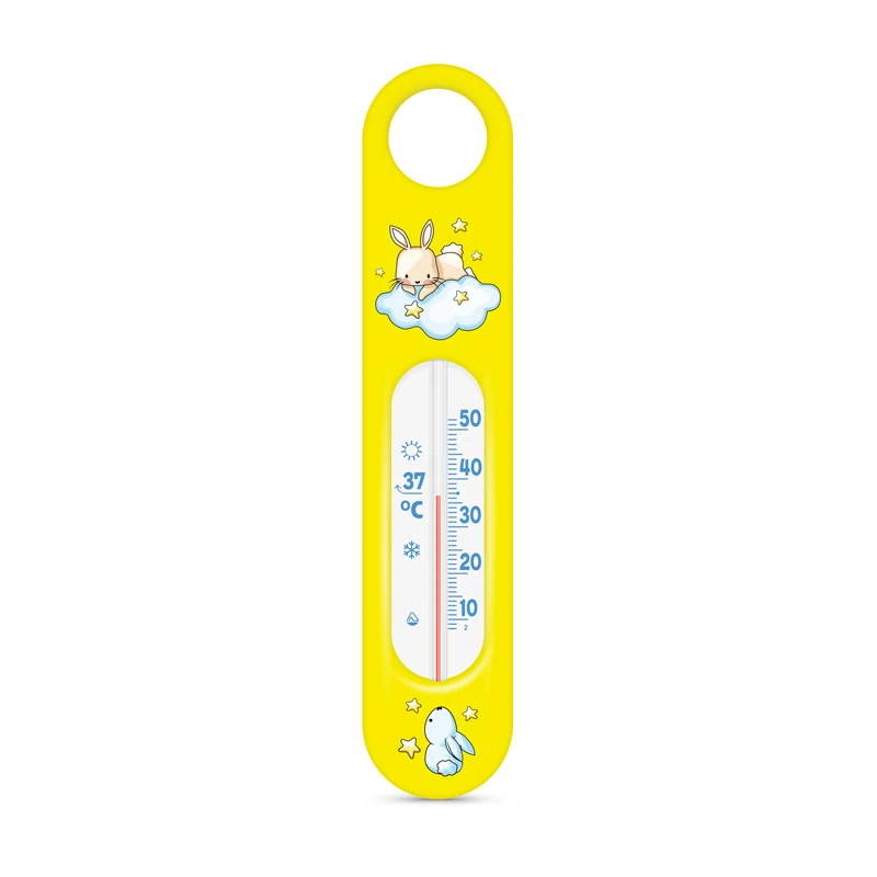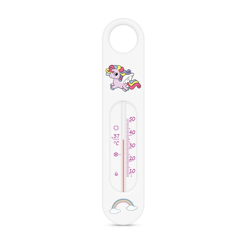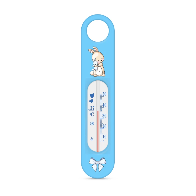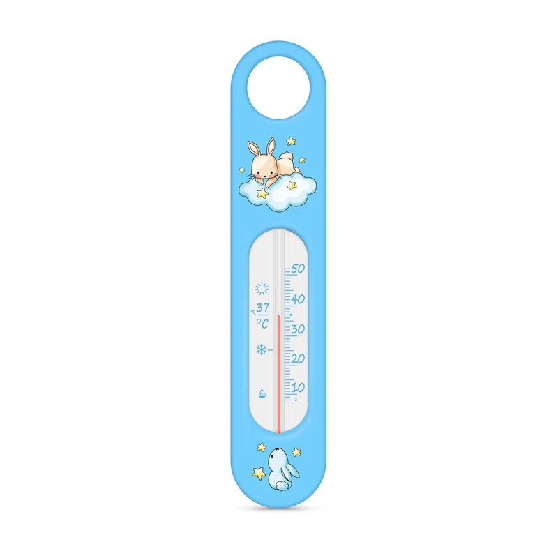 Важливим атрибутом купання маленьких дітей є водний термометр. Він дозволяє точно вимірювати температуру води. Приємні кольори, цікаві малюнки і обтічна форма зроблять його улюбленою дитячою іграшкою. На кожному термометрі для води є відмітка 37 ° C - комфортна температура для купання дитини. Не містить Бісфенол-А