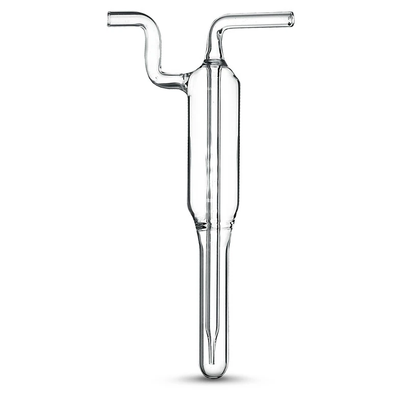 Виріб являє собою скляний циліндр, широкий вгорі і більш вузький внизу. У верхню частину впаяні дві трубки. Одна коротка, впаяна горизонтально до основної осі приладу, служить для виходу очищеного повітря. Друга трубка звужується донизу і доходить майже до дна скляного циліндра.