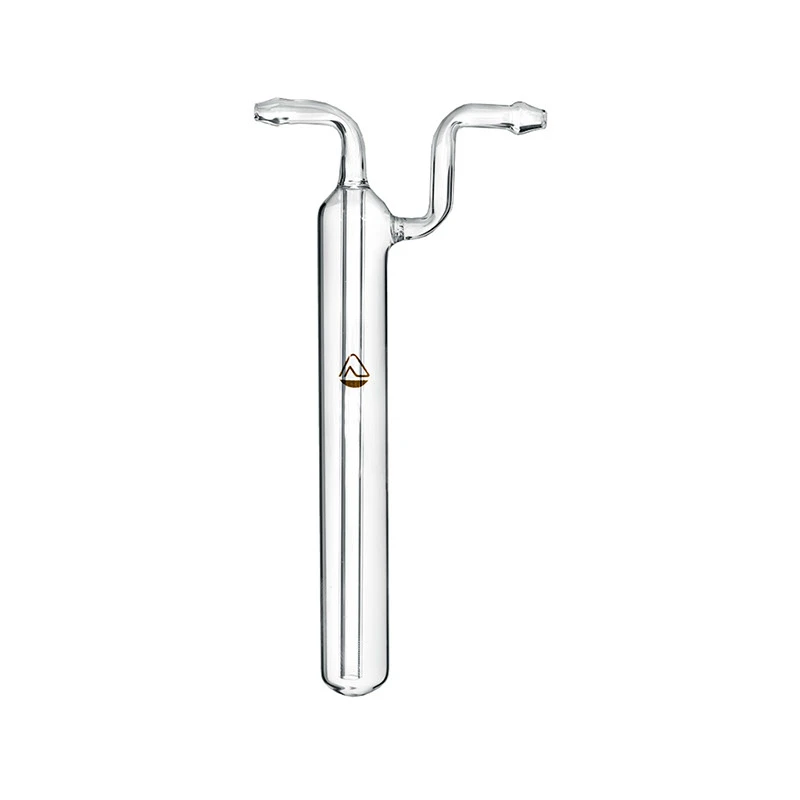 Хімічна склянка типу СВТ - з упаяними трубками. ГОСТ 25336-82. Склянка цільна, насадки як такої немає, круглодонна. Вхідна і вихідна трубки приєднуються до обладнання за допомогою гумових трубок з зажимами.