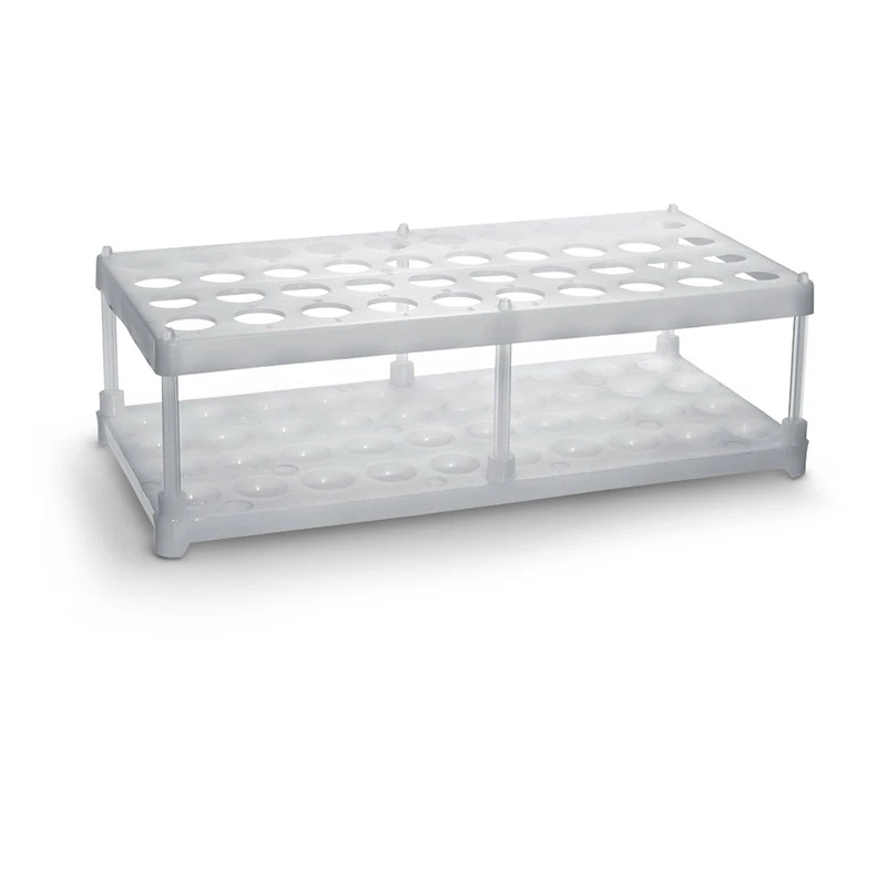 Штатив для пробірок виготовлений із пластику, розбірний. Штатив призначений для установки пробірок в вертикальному положенні. Він відрізняється малою вагою, для транспортування і зберігання може розбиратися. Має надійну конструкцію, яка зберігає свою жорсткість після багаторазового розбирання. Призначений для установки скляних пробірок з поживними засобами, культурами бактерій та реактивами.