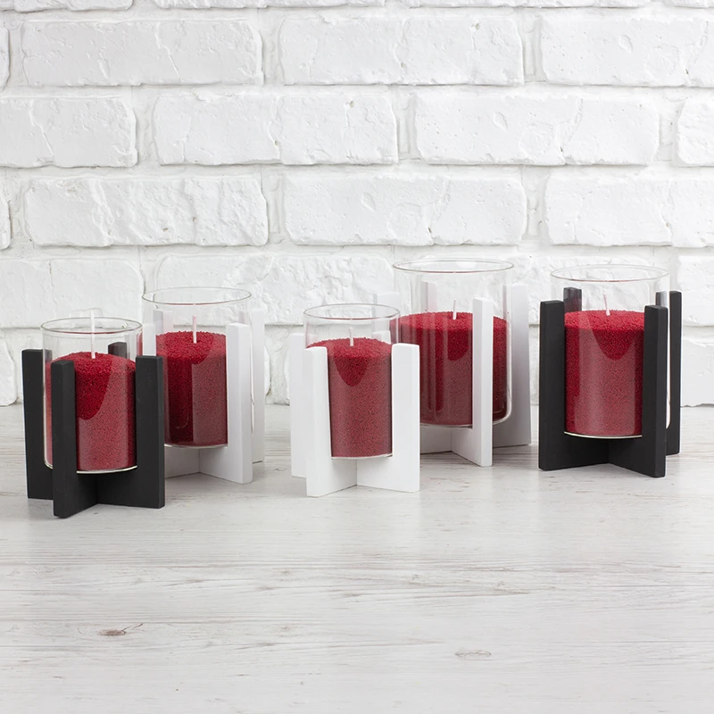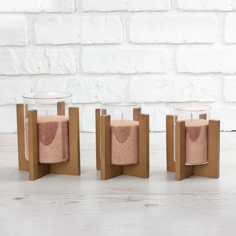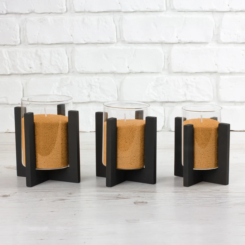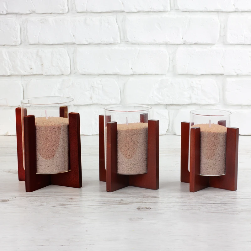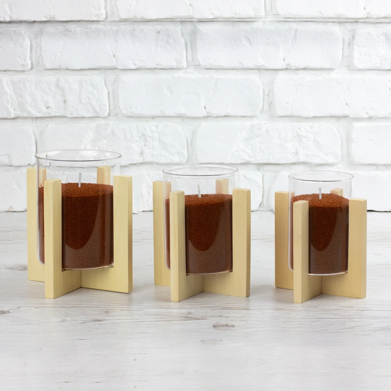 Підсвічник Опис Підсвічники продаються без свічок Декоративний підсвічник з натурального дерева, складається з двох частин, дерев'яної хрестовини та скляного стакана.